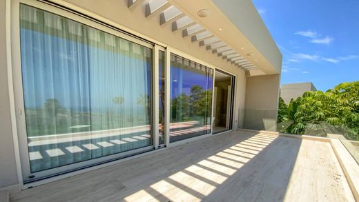 The villa has four spacious bedrooms and six full bathrooms, ensuring privacy and comfort for all family members and guests. Each bedroom has its own en-suite bathroom, with the master suite standing out for its large dressing room. The modern design kitchen is equipped with state-of-the-art appliances and seamlessly integrates into the open and bright living space, thanks to its large windows offering stunning views of the golf course and the sea.