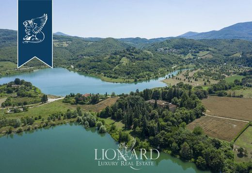 This stunning historical villa for sale by Lake Bilancino, framed by the luxuriant Tuscan countryside of the province of Florence.