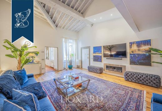 The left wing houses an eat-in kitchen, a second double bedroom with antique terracotta flooring, and another bathroom. The flat is meticulously maintained, combining classic and contemporary elements with modern home automation and security systems. This property offers a rare opportunity to experience luxurious living in the heart of Renaissance Florence.