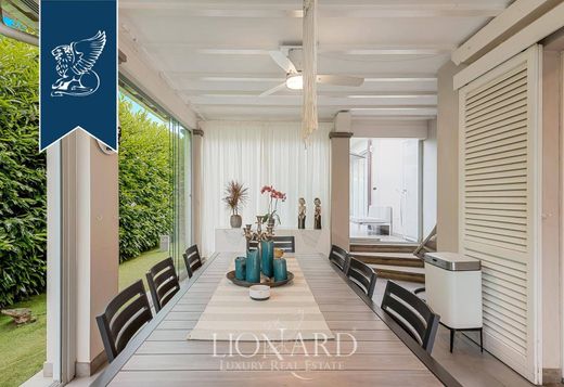 This luxurious villa for sale in Forte dei Marmi, in Versilia, offers 282 sqm of modern comfort in a quiet residential area near all amenities. Recently renovated, it features a 500-sqm garden with a Jacuzzi pool and parking for two cars. With an A4 energy classification and a 10kW photovoltaic system, the villa combines luxury, comfort, and sustainability.