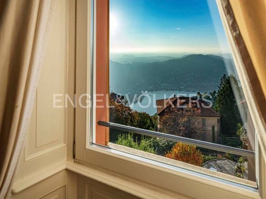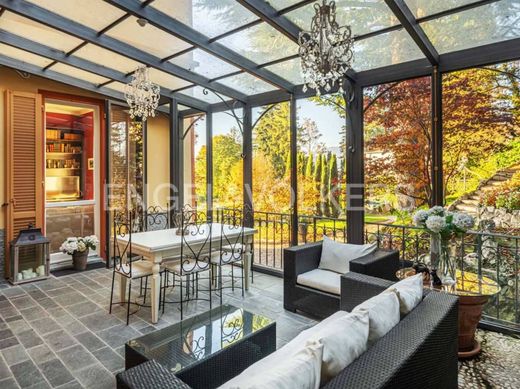 The villa is surrounded by a beautiful, well-planted flat garden with flower beds and tall trees, a romantic gazebo and panoramic terraces with breathtaking views of the lake and the town of Como.