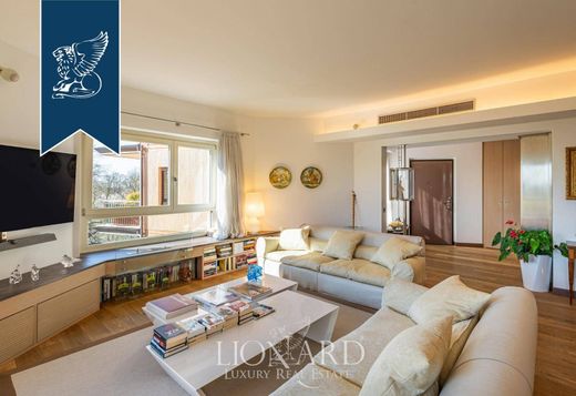 This wonderful two-storey designer penthouse for sale with a stunning panoramic terrace is located in front of Monza's park, one of the biggest walled parks in Europe.