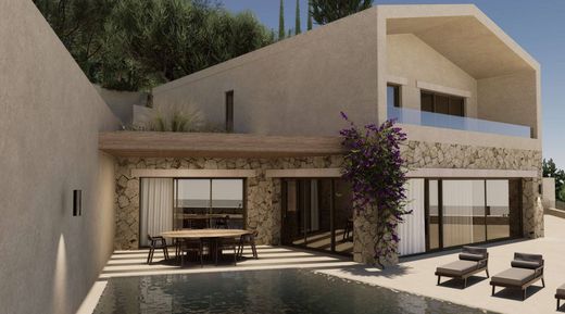 Nestled in the idyllic Kalami Bay, Corfu, this luxurious property spans 460,40 sq.m. (with walls) over 3 levels per villa on a 1,344 sq.m. plot, offering the potential for two independent villas. With 5 bedrooms, 6 bathrooms plus a WC each of them, and a range of premium features—including a gym, engine room, basement, service room, cour anglaise, dining area, living room, and a fully equipped kitchen—it’s designed for both comfort and sophistication. Outdoors, a stunning 52 sq.m. swimming pool complements the spacious grounds, ideal for gardens or alfresco living. Perfect as a family retreat, luxury rental, or a combination of private residence and guest house, the property’s prime location near the bay and local amenities makes it an unmatched investment opportunity.