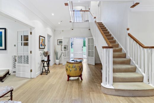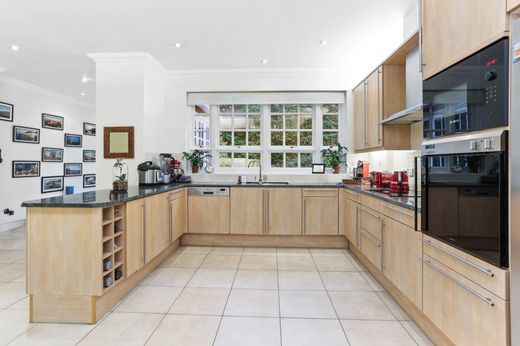 This wonderful family home was built bespoke for its current owners in 1999 and backs onto Claremont Landscaped gardens. Set on a 0.42 acre plot and securely located behind electric gates, the impressive nature of the property is apparent before entry thanks to its red-brick facade and large sweeping driveway. The bright and spacious entrance hallways provides access to the principal reception rooms and leads onto a large open plan kitchen which has excellent views of the verdant garden. The large garden at the rear of the property has a patio terrace and has been meticulously planted to ensure privacy thanks to the tall, mature hedges and shrubbery. Also located on the ground floor is a formal dining room, a play room, a study, utility room and a morning room. Throughout the home there are high ceilings and an abundance of natural light thanks to the large windows. There are five generously proportioned bedrooms on the first floor, three of which have ensuite bathrooms, plus an additional family bathroom. The home is situated in one of Esher’s most prestigious private gated communities on a well managed estate which offers private security. London is approximately 20 miles away with the A3 and M25 Motorway nearby and trains from Esher and Claygate Station allow direct access to London Waterloo from 23 minutes. The area boasts a plethora of excellent schools both state and independent.