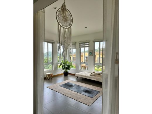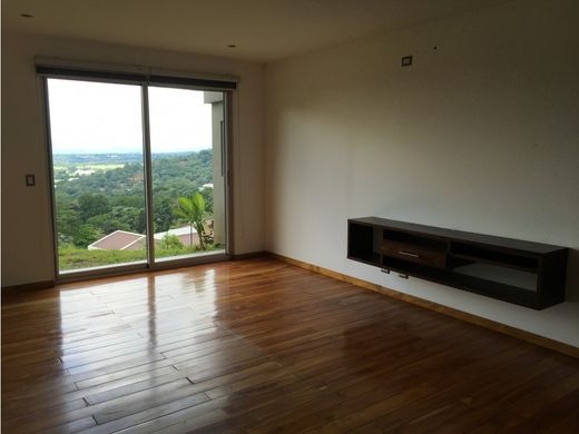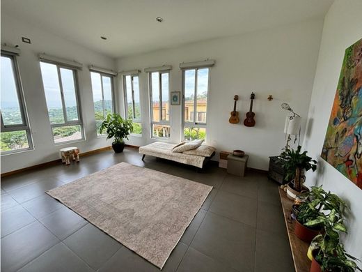Contemporary Home in Cerro Colón – Panoramic Views of the Central Valley Located in the exclusive Cerro Colón condominium, this elegant three-level residence combines luxury with the natural beauty of its surroundings. Designed to maximize the use of the land and highlight its stunning views of the city and the Central Valley, this property is the epitome of comfort and sophistication. Property Features Level 1 Parking: Space for two vehicles under roof and an additional third uncovered space. Private Suite: Ideal for guests, with a full bathroom and a practical storage room. Level 2 Social Area: Spacious open-concept living, dining, and kitchen with luxury finishes. The kitchen includes quartz countertops and an elegant macana wood breakfast bar. The social area, with porcelain tile floors, covers a total of 66.60 m². Master Bedroom: A tranquil retreat with solid wood floors and panoramic views of the garden and valley. Its en suite bathroom features a slate-floored Jacuzzi and a walk-in closet. Secondary Bedrooms: Two additional bedrooms, each with a walk-in closet, share an elegant full bathroom with slate floors. Secondary TV Room: A cozy space ideal for family entertainment. Internal Garden: A natural oasis within the residence, providing harmony and freshness. Service Area: Maid's quarters with a private bathroom and a fully equipped laundry area. Level 3 Independent Guest House: A spacious and elegant space with a master bedroom, walk-in closet, and full bathroom with a bathtub. It has its own kitchen and living room, making it an ideal option for entertaining guests or generating rental income. High-End Extras and Finishes: Curtains, lamps, refrigerator, combi-cooker, oven, and microwave included. Closets and floors are made of high-quality hardwood imported from Colombia. 2,500-liter water reserve tank and high-speed German water heating system. Integrated SONO sound system in the living and dining rooms, with decorative floor lighting. Preparation for the installation of a Jacuzzi in the internal garden. Condominium Location and Benefits Located in the prestigious Cerro Colón condominium, this property offers the perfect combination of luxury, security, and contact with nature. Key Distances 10 minutes from Santa Ana and Escazú. 5 minutes from Route 27. 45 minutes from the beaches of the Central Pacific. Condominium Amenities 24/7 security with controlled access and motorized surveillance. More than 2 km of nature trails, streams, and waterfalls for outdoor enjoyment. Two-level clubhouse, heated pool with wet bar, tennis and multi-sport courts, BBQ areas, and recreational spaces. First-class infrastructure with underground wiring, preserving the natural surroundings and panoramic views. A Unique Opportunity This property is ideal for those seeking a family residence in a safe and exclusive environment, as well as for those seeking an investment with rental potential thanks to its independent guest house. Asking Price: $590,000 Discover the luxury, comfort, and serenity of living in Cerro Colón. Your ideal home awaits!
