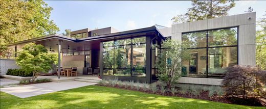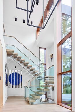 Welcome to 116 Chartwell Road, a stunning Net Zero certified masterpiece in South East Oakville, blending luxury, sustainability, and wellness. Designed by David Small Designs and crafted by Troika Custom Builders, this eco-friendly gem prioritizes your health with a fully sealed envelope, advanced insulation, and a geothermal system paired with a 14.49kW solar array. This ensures clean, energy-efficient living, reducing exposure to pollutants and maintaining superior indoor air quality for a healthier, more comfortable home. Step inside to an open-concept layout bathed in natural light through mahogany-framed floor-to-ceiling windows and a striking pyramid skylight, highlighting beautiful wire-brushed white oak floors. The gourmet kitchen shines with a Diamante Quartzite island, custom lacquered cabinetry, and top-tier Gaggenau appliances—perfect for healthy, home-cooked meals. Outdoors, a stylish covered patio with a mahogany-clad ceiling, dual Kenyon barbecues, a stainless steel hot tub, and surround sound creates an inviting space for relaxation and entertaining. The main floor primary suite is a serene retreat with a walk-through dressing room and a luxurious 5-piece ensuite featuring a steam shower and oversized soaking tub, promoting relaxation and well-being. A home office with garden views and a floor-to-ceiling oak bookcase offers a calming workspace. Upstairs, two spacious bedrooms with ensuites ensure comfort for family or guests. The lower level is an entertainment hub with a fitness room for active lifestyles, a recreation room with a built-in bar and pool table, and an additional bedroom with ensuite. Smart home technology seamlessly integrates audio-visual, lighting, and security systems, controlled via intuitive apps and two master control rooms, ensuring peace of mind. The exterior impresses with Neolith cladding, automated gates, and a landscaped design with irrigation and lighting. A tandem four-car garage with a hydraulic lift and EV charging, plus extra outdoor parking, adds convenience. At 116 Chartwell Road, sustainable luxury meets wellness in one of Oakville’s most prestigious neighborhoods—a home that’s as good for you as it is for the planet!