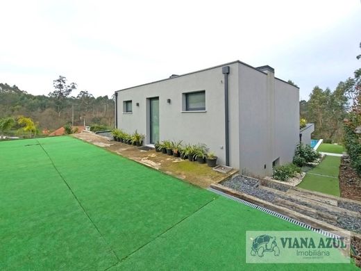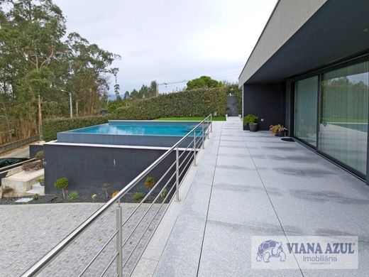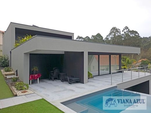 VIANAAZUL - MODERN VILLA WITH POOL AND GARDEN IN VILA FRANCA, VIANA DO CASTELO. We present an extraordinary villa of modern construction, located in the picturesque Vila Franca, in Viana do Castelo. Inserted in a generous plot of 1073 m², this property stands out for its contemporary architecture, for the comfort throughout its space. With a modern construction, this villa stands out for its straight lines and the absence of a traditional roof, providing an elegant and contemporary aesthetic. Every detail has been designed to offer comfort, functionality and a comforting living experience. The entrance to the villa reveals a cosy and well-lit environment, with a living room in an open space concept, which merges harmoniously with the modern and fully equipped kitchen. This space is ideal for family gathering and for the reception of guests, offering spaciousness and natural light. We do not ignore the excellent room next to the garage where we can gather friends in perfect fraternisation with an equipped kitchen and a well-equipped living room. The villa has three bedrooms, all of them suites, offering maximum comfort and privacy to its inhabitants. Each suite has a private bathroom, decorated with quality materials and modern finishes. The design of the suites was designed to create a welcoming environment, providing a total sense of well-being and comfort. Situated in a secluded and extremely quiet area, this villa offers the perfect combination of privacy and proximity to nature. The place is ideal for those who want to enjoy moments of serenity and peace, away from the hustle and bustle of the city, but still close to everything. Visit her!!