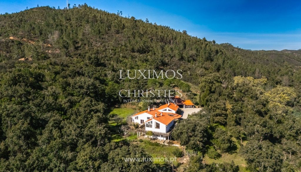 A unique property consisting of a 5-bedroom villa and a lush garden with fruit trees and open land. Located in a beautiful rural area of the Algarve, in Monchique, surrounded by the mountains, the green of the wilderness, and with unobstructed views over the valleys.
