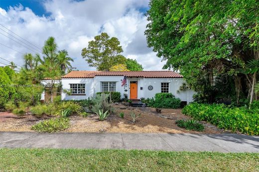 Miami Springs Charm at its Finest!! This Morningside Drive Home has been beautifully maintained by its three owners since 1937. Featuring 3 spacious bedrooms, two bathrooms and a 1-car garage/laundry room, this home is ready to move in and enjoy. Original hardwood floors, 2 wood burning fireplaces, spacious family room, beautiful vaulted tongue and groove ceilings, built ins and more. The primary bedroom is very spacious and features, two walk in closets, sitting area and double sliding doors with tranquil views of the garden and covered patio. The primary bath is complete with double sinks, shower and features imported Moroccan Zellige tile. The split bedroom plan features two additional bedrooms with jack and jill bathroom recently updated with all the modern finishes.