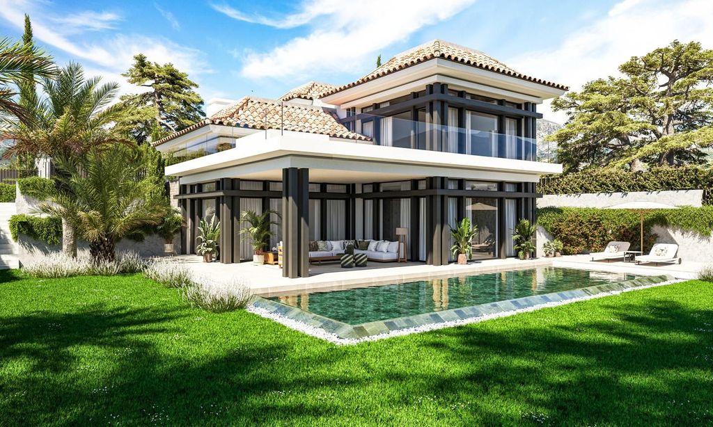 Luxury five-bedroom villa with private pool and magnificent panoramic views. Located in a private gated urbanisation in the prestigious area of New Golden Mile, offering the highest standards of comfort.