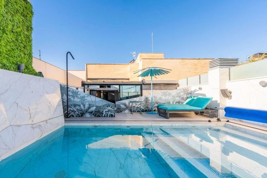 The property is entirely exterior and features a huge terrace on the upper floor with a private pool, a chill-out area, a summer dining area, and a barbecue area, perfect for enjoying the Madrid climate.