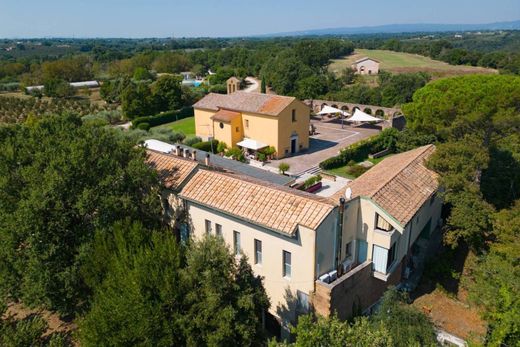The estate is completed by the accommodation facility with nine comfortable bedrooms on the first floor with en suite bathrooms and air conditioning and two apartments, one of which has an independent entrance, with a view of the Tiber Valley, Mount Soratte and the medieval village of Gallese. On the ground floor, the dining room of approximately 107 square meters with 3.70 meter high ceilings and direct access to a pleasant pergola, a 40 square meter kitchen with pantry and large spaces to savor local cuisine and chat in an armchair in the warmth of large fireplaces.