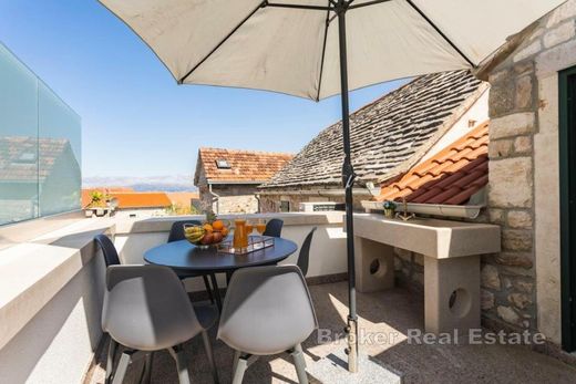 An exceptional stone house located in the charming village of Sutivan on the island of Brač. This delightful property offers 90 m² of living space spread across three floors, combining traditional architecture with modern design. Built with high-quality materials and meticulously maintained, the house ensures durability and top-notch functionality.The ground floor has a separate entrance and is designed as a functional studio apartment, providing privacy or potential for tourist rental. The second and third floors are connected by an internal staircase. The second floor features a spacious living room, a fully equipped kitchen, and a modern bathroom, while the third floor is dedicated to a cozy bedroom with an en-suite bathroom and access to a beautiful terrace. The house features a private parking space and an additional room designed as a laundry area and a small storage space, ensuring extra functionality and convenience. Located just a few minutes' walk from the town center and the waterfront, this property offers everything needed for a relaxed and high-quality island lifestyle or as an investment in tourism.