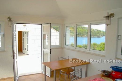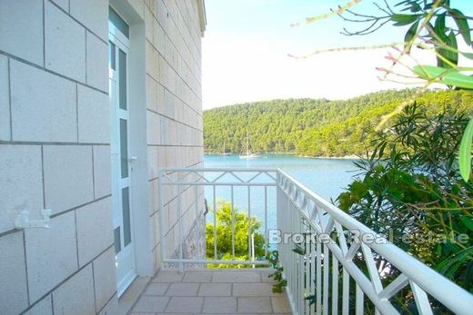 House first row to the sea, the island of Mljet The house is located in an attractive location, first row to the sea. In nature, it is a semi-detached house with separate entrances. The house is located on a plot of 390m2 and is spread over 4 floors interconnected by an external staircase. There is a 22m2 garage on the ground floor. – On the first floor there is a three-room apartment, in front of the apartment there is a large terrace that serves as a sunbathing area in the summer. – On the second floor, which until now has been used for commercial tourist purposes, there are 4 rooms, each with its own bathroom. – On the third floor there are also 4 rooms, each with its own bathroom. On this last floor there is also a summer kitchen (approx. 20m2) and a courtyard with a barbecue, i.e. a courtyard area surrounded by a dense pine forest, a space intended for family gatherings. Mljet is the most forested Croatian island, a national park, an island of mysticism, where you can rarely find real estate for purchase, and even more rarely a house in an attractive location in the first row to the sea. The island is connected by ferry to the Pelješac peninsula, which is a 40-minute drive by car to the first highway junction, or an hour's drive to the airport in Dubrovnik.