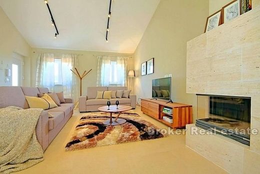 House with a pool located in an attractive location 10 km from Poreč and 8 km from the sea. The property with a living area of 155m2 is located on a plot of land of 750m2. The house consists of two floors. On the ground floor there is an open concept kitchen with dining room and living room, two bedrooms and a bathroom. From the living room, there is access to the terrace that leads to the landscaped garden with a swimming pool, sun deck and barbecue. An internal staircase leads to the first floor where there are two bedrooms and one bathroom. It is an attractive offer due to its location in a quiet place near all necessary facilities for living such as grocery stores, educational institutions and the like.