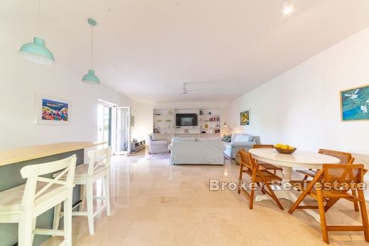 Renovated stone house on the island of Brač. This spacious stone house was completely renovated in 2018 and the roof was completely renovated in 2021. The house of 200 m2 is located on a plot of 505 m2 in the center on the south side of Brac. The property is spread over three floors. The ground floor has a kitchen, bathroom, living room and exit to the terrace. Upstairs there is a kitchen, bathroom, one small toilet, 2 bedrooms and a living room with access to the terrace. On the first floor there is also a separate apartment with a bedroom and a bathroom. On the third floor there is an attic of 100 m2. In front of the house there is a large garden and a summer kitchen with a fireplace and a bar. There is also a spacious garage within the house. The house is located near all amenities important for life. Distance from the sea is 250 m. The excellent condition of the house and the top location make this house perfect for a family or for a tourist business.