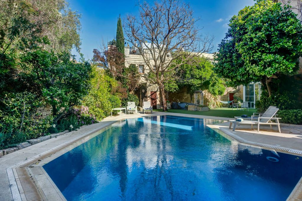 Distinguished Maltese House of Character, meticulously restored nestled in the heart of Balzan. This spacious home has been thoughtfully designed to accommodate modern family life while preserving its historic charm. Recently renovated, the house strikes a balance between maintaining its heritage and offering a refined, contemporary finish. The property features a U-shaped design that embraces a large, well maintained garden, ideal for outdoor living. Surrounded by mature trees, vines, and ancient stone walls, the garden exudes a peaceful and serene ambiance. It includes a generous dining area, a BBQ area that seamlessly connects to the kitchen island, and a well-sized swimming pool. On entering the house through the hallway one finds a cosy TV room, which then leads to large modern fully equipped kitchen and casual dining area in the lovely conservatory that leads onto the garden. The property flows naturally into a spacious living and dining area with a wood burning fireplace. The high ceilings in the formal dining room enhance the sense of space, while the fusion of Maltese stone and elegant chandeliers creates a stunning contrast of old-world charm and modern luxury. Additionally, a newly built wine cellar, with floor-to-ceiling glass, is beautifully integrated into the dining area, offering a seamless transition to the temperature-controlled cellar. This level also includes a guest bedroom with en-suite, a guest bathroom and a gym. Upstairs, there are four en-suite bedrooms, the master suite with a walk in wardrobe, and with each bedroom enjoying access to a private terrace. On the third floor, a bright, airy room offers potential as an office or additional gym space. Furthermore, the property has a one-car garage, and a second separate garage that is currently housed as a gym.