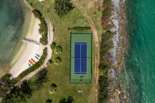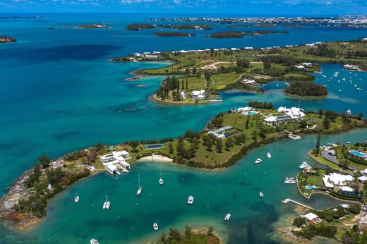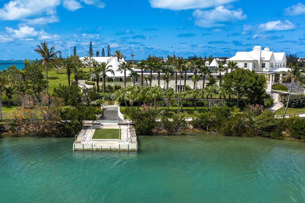Short-Term / Vacation Rental. Discover Perot's Island, a spectacular private escape spanning over 8.16 acres located in Riddell’s Bay, Bermuda. The stunning 17,000 sq. ft. residence encapsulates original Bermudian charm with extensive modern upgrades. This enchanted isle is ideal for the active lifestyle enthusiast or those seeking complete serenity and relaxation. The main residence boasts many desirous features including a majestic 30 sq. ft. drawing room with 18' ceilings, covered verandahs for entertaining with French doors opening out from the dining, kitchen and formal living room, creating an idyllic indoor/outdoor living experience. The fully upgraded kitchen features a large informal dining area and separate formal dining conveniently adjacent. A cedar library and large conference room are perfect for remote working. All 10 bedrooms are complete with en-suite baths or showers featuring views of the well-manicured grounds and Riddell’s Bay. The home includes staff accommodation and a commercial kitchen for catering and events. Amenities consist of a 50' swimming pool, children's pool, tiered fountain, pool deck with BBQ, 1-bed pool pavilion with a gym, paddle ball court, private beach with jetty. Easily accessible with included boat service minutes from the mainland and sheltered dock. Minimum 7 night booking. Available for rent, short-term and vacation escapes!