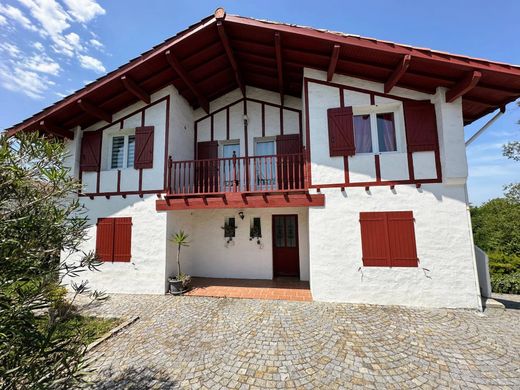 Beautiful Basque-style building built in 2004 on 2 levels + LARGE BASEMENT on a plot of 1450 m². Located 15 minutes walk from Uhabia beach, in a quiet and residential area, this magnificent house benefits from a beautiful unobstructed view of the charming village of Bidart and a glimpse of the ocean! It is currently divided into 2 independent dwellings (external staircase) but can very easily form a single large family home thanks to its internal staircase still existing and hidden by partitions and cupboards. IN TOTAL: 6 bedrooms, including 2 with shower rooms + 2 additional bathrooms. The ground floor and the first floor are composed of 3 bedrooms, one with a shower room, 2 toilets, a second bathroom, a beautiful and comfortable living room with open kitchen, large spaces, very bright room thanks to its numerous openings to the outside to the east, south and west. On the ground floor we have a double terrace. covered to the west with a beautiful unobstructed view and a second one to the south. Upstairs you will also enjoy beautiful sunsets and family dinners at sunset in the west! The visit is not over! A large garage and storage spaces await you in the basement with a surface area of approximately 90 m²! The property is secured by a fence and a gate. with an elegant entrance and an outdoor courtyard in paving stones, easy to maintain then a large plot of land which will give free rein to your imagination to arrange the garden to your taste! All drainage. State of risks and pollution: realized (2025-09-02)
