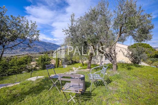 Nice West/Saquier - On the green hills of Nice, come and discover this charming detached house of 105 m2 + 31 m2 of independent studio enjoying an incredible view of the Baou de Saint Jeannet and the snow-capped mountains. It is composed of a beautiful entrance, a semi-independent fully equipped kitchen and a magnificent living room with pellet stove opening onto a large and wonderful terrace facing SOUTH/WEST. This bright living room offers you a breathtaking view of the Baou. Upstairs, a very large bedroom with office space of 18 m2 as well as two other bedrooms with storage cupboard, a bathroom with whirlpool bath and a shower room with WC. A large adjoining garage on the ground floor with separate WC. You will enjoy a pleasant landscaped plot of 1,500 m2 in absolute calm decorated with olive trees and a pétanque court. It is possible to convert an outbuilding of approximately 50 m2. A FAVORITE house!!