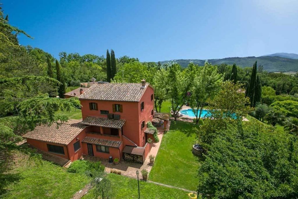 Casale Magnolia is a marvellous property set on a gentle Umbrian hillside, surrounded by a beautiful park of approx. 12,000 sqm, rich in vegetation, ornamental trees, fruit trees, olive groves and walnut trees. The villa, measuring approx. 350 sqm, is on three levels and consists of a large living room with fireplace and exit to a beautiful portico, large kitchen, dining room with fireplace, service bathroom, bedroom with en-suite bathroom, cloakroom, laundry room and technical room on the ground floor; cosy living room with fireplace, master bedroom with en-suite bathroom and terrace on the first floor, which can also be reached from the outside by means of the classic staircase typical of Umbrian farmhouses; three bedrooms and two bathrooms on the second floor.