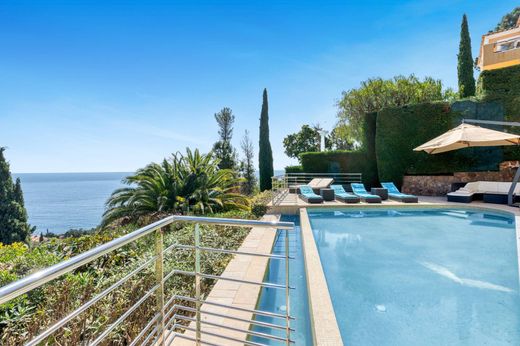 Côte d’Azur Sotheby’s International Realty is pleased to present for sale this charming property located in Le Trayas, at the entrance to the Estérel hills, within a private and secure estate perched above the bay. Set on a plot of approximately 1,050 m², this Provençal-style villa offers around 231 m² of living space spread across two levels. Nestled in a peaceful and residential environment, the property enjoys full southern exposure, ensuring optimal sunshine throughout the day. The villa features a fluid and functional layout: an entrance hall, a spacious living room with a fireplace, a dining area, and a fully equipped kitchen in traditional Provençal style. The night area includes four en-suite bedrooms, including a master suite with its own dressing room. Several terraces extend the living space, offering open views of the Mediterranean Sea and the Estérel hills. A large garage completes this rare offering in the area. Surrounded by the exceptional natural beauty of Le Trayas—between the red rocks of the Estérel and the deep blue of the Mediterranean—this villa stands out for its unique character. The location is highly sought after for its tranquillity, lush Mediterranean vegetation, and spectacular scenery. Only 5 minutes from the Port de la Figueirette and its beaches, 10 minutes from the center of Théoule-sur-Mer, 35 minutes from Cannes, and 45 minutes from Nice International Airport, the property combines nature, comfort, and accessibility. A unique opportunity for lovers of charm and sea views, exclusively presented by Côte d’Azur Sotheby’s International Realty, your reference for luxury real estate on the French Riviera.