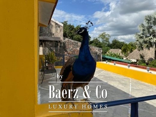 A completely upgraded old henequen hacienda just 40 min from downtown Merida and 30 min from Sisal, totally enclosed with Maya stone walls, abundant wildlife - even eight domesticated peacocks wandering the patios!