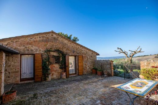 Next to the two buildings used as a dwelling, we find another outbuilding used as a garage and tool shed.The main house is on three floors, on the ground floor we find a large living room with Tuscan kitchen overlooking the large courtyard that invites to convivial events and shared moments; continuing inside we find a toilette, as well as a large pantry and an ancient large cellar whose origins are presumed to date back to 1300. Going up to the first floor we find a large room with an incredibly bright fireplace with large windows that frame the views of the Valdorcia, from here you access to the master bedroom with bathroom and a corridor that leads us to two further bedrooms, two bathrooms and a home-video / study room, from which a staircase leads us to the last bedroom that has of a small porch on the outside and is therefore equipped with independent access also from the garden. In total in the main house there are currently 4 bedrooms and 4 bathrooms. Outside the typical courtyard connects the main house to the guest house, along the side of the courtyard that connects the two buildings, we find an old wood oven and three small storerooms.