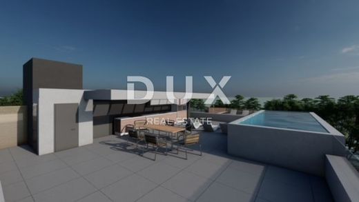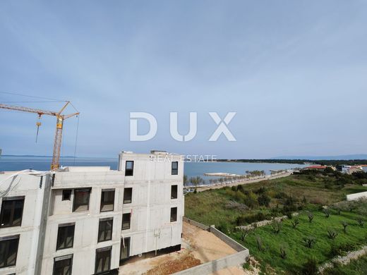 For sale is a top luxury penthouse on the second floor of a modern new building, located just 30 meters from the sea, in the beautiful seaside resort of Zaton near Zadar. The apartment with a total net area of 97.05 m2 offers the perfect combination of contemporary design, functionality and an exceptional location. The penthouse consists of an entrance hall, a modern kitchen with dining room and a spacious living room, three comfortable bedrooms - one of which has its own bathroom - additional bathrooms and a separate laundry room. The living room and dining room are connected to the terrace by a large glass sliding wall that allows for plenty of natural light and offers a captivating view of the sea. The building was built to the highest standards: aluminum joinery from the renowned manufacturer Schüco with electric shutters and blinds, a Schindler elevator, top-quality large-format ceramics, underfloor heating using a heat pump and Mitsubishi air conditioners for maximum comfort throughout the year. The bedrooms have high-quality parquet flooring, and the entire property exudes elegance and quality. The apartment is subject to VAT, which means that the buyer does not pay real estate tax. The energy certificate A is in the process of being obtained, and the move-in is planned for summer 2025 - the ideal time to enter a new story by the sea. Zaton is a charming Dalmatian town that combines the peaceful atmosphere of the Mediterranean coast with modern amenities. It is known for its beautiful promenade by the sea, clean beaches, and the Holiday Resort Zaton - one of the most famous tourist complexes in Croatia, which offers numerous facilities for the family, sports and recreation. Just a few minutes drive away is the historic city of Zadar, full of cultural heritage, excellent gastronomy and unforgettable sunsets. If you are looking for a dream home, a luxury resort or a smart investment on the Adriatic coast - this is an opportunity you do not want to miss. For all additional information and a viewing, please feel free to contact us - we will be happy to guide you through this exceptional property.