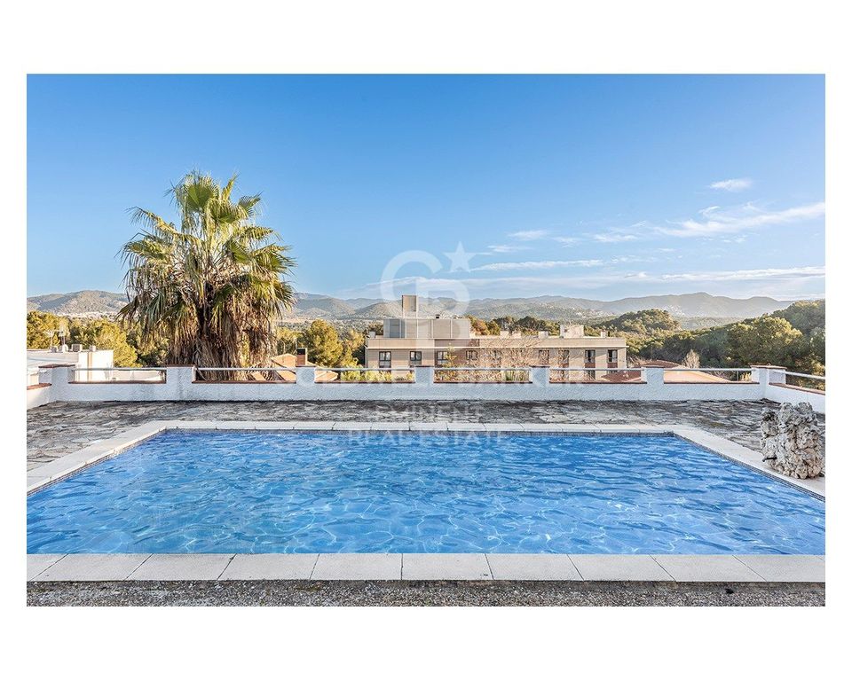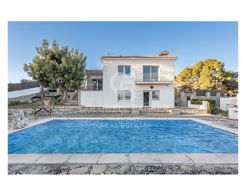 This chalet offers an unparalleled lifestyle, surrounded by mountains and boasting spectacular views of the Garraf Natural Park. Located in the exclusive and peaceful Els Cards residential area, the home enjoys excellent connectivity. Just minutes away from the Valenti Village shopping center, the Padel CPI Indoor Club, Terramar Golf Club, and prestigious international schools such as Richmond International British School and Lycee Francais International Bel Air.