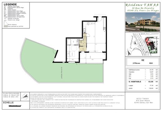 Unique! Located in the town of Six-Fours-les-Plages, on the Solviou coast road, 100 meters from the sea, discover this new luxury development. Exclusively, magnificent one-bedroom apartment of 64m2 with 17m2 terrace and 130m2 private garden, sea view. It consists of a large living room-kitchen, a bedroom with its own bathroom and separate WC. The apartment will seduce you thanks to its generous volumes and its geographical location. For added comfort, this accommodation is sold with a garage. Do not hesitate to contact us for more information!