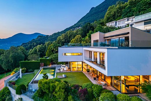 Located in Albonago on the sunny slopes of Monte Brè, this contemporary villa is a true haven of light, privacy, and refined design. Overlooking a large municipal park and offering sweeping panoramic views of Lake Lugano, the property perfectly balances the tranquility of a secluded setting with the convenience of being just minutes from the vibrant city center. Here, nature and architecture blend seamlessly to create an unparalleled living experience.