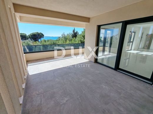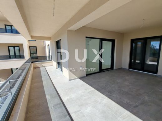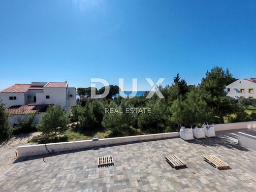 For sale is a modern apartment marked S6, located on the first floor of the building, with a beautiful sea view. With a net area of 104.49 m2, the apartment consists of a spacious living room with a kitchen and dining room in an open space concept, three bedrooms - each with its own bathroom, an additional guest toilet, separate laundry, storage inside the apartment and an additional storage room located right next to the apartment on the same floor. The apartment also has two covered terraces, which provide plenty of space for outdoor enjoyment, and its own parking space in the building's courtyard. Located in a quiet part of Privlaka, this new building is only 70 meters from the sea and the beach, with secured private access. The building is equipped with an elevator and built with top-quality materials - including underfloor heating in the living room with kitchen and dining room, air conditioning in all rooms and elegant high-quality ceramic tiles. Large glass walls and French windows bring in plenty of natural light, creating an airy, bright and extremely pleasant environment for living or vacationing. Privlaka is a charming Dalmatian town that combines a peaceful family atmosphere with natural beauty - beautiful sandy beaches, crystal clear sea, coastal promenades and excellent gastronomic offer in numerous restaurants. Nearby are the historic town of Nin, the popular island of Vir and Zadar, one of the most beautiful cities on the Adriatic with a rich cultural and entertainment offer. This property offers the perfect combination of luxury, comfort and a prime location. For more information and a viewing, please feel free to contact us - this is an opportunity you do not want to miss.