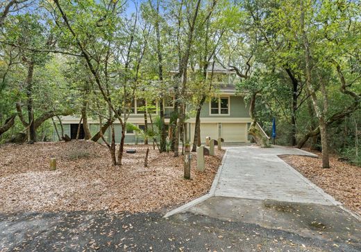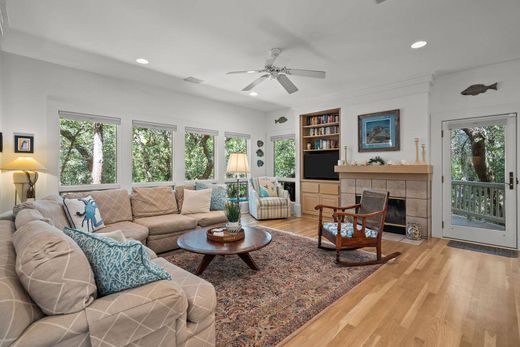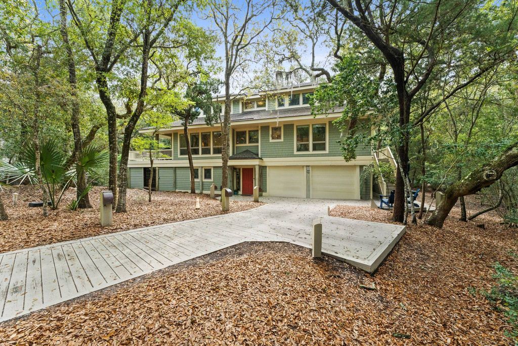 Experience ultimate privacy in this meticulously maintained four-bedroom home, nestled among the live oaks on a sprawling lot and a half at the end of a peaceful cul-de-sac. With the adjacent lot donated to the Smith Island Trust, you'll enjoy unparalleled serenity and a sense of complete immersion in nature. The main level is bathed in sunlight, showcasing an open great room, an adjoining dining area, and a newly remodeled chef's gourmet kitchen. An extra-large screened porch offers stunning views of the maritime forest, creating a seamless connection with the surrounding wildlife. An open deck on this level provides additional space for family gatherings and entertainment. The master suite is conveniently located on the main level, along with a powder room, multiple pantries, ample storage, and a full laundry room. Upstairs, you'll find three additional bedrooms and two full baths, offering treetop views and a sense of escape. The ground level features a fully heated and air-conditioned bonus room, ready to be transformed into a family playroom, home office, or whatever suits your needs. An outdoor shower and a spacious conditioned garage add to the home's functionality. This home comes fully furnished and includes two golf carts (one enclosed), two kayaks, two paddleboards, six bikes, and a ping pong table. With two new HVAC units and a 2013 roof, this property is as practical as it is inviting. A BHI Lifestyle Equity Membership and a Shoals Membership are available for separate purchase.