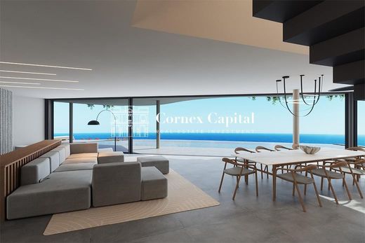 The upper floor is dedicated to the main sleeping area, with a spectacular master bedroom with an en-suite bathroom, a large dressing room, a seating area, and direct access to a private terrace. Two additional double bedrooms on this level each have an en-suite bathroom, built-in wardrobes, and access to a shared terrace, and all bedrooms enjoy unobstructed sea views.