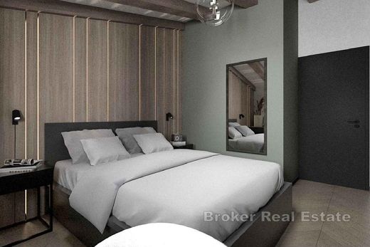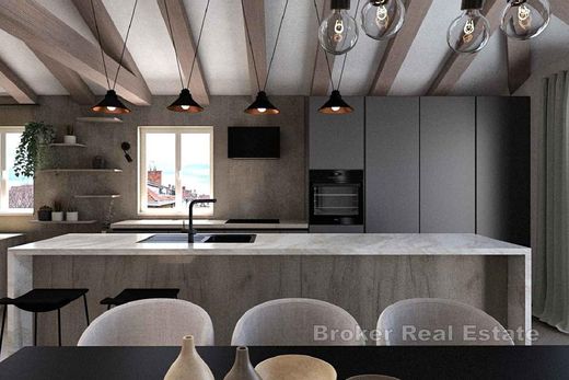 We offer a ccomfortable two- to four-bedroom apartment located on the third floor of a well-maintained residential building, in one of the most sought after locations in Split – Manuš. Thanks to its southwest orientation, the apartment is flooded with natural light throughout the day, and the living room offers a stunning view of the Marjan forest park. With a total area of 100 m², the apartment represents an ideal potential for custom made renovation by the future owner. There is already an architectural plan with several layout proposals, with a modern organization of the space planned: the entrance hall leads to an open living room connected to the kitchen and dining room, with access to a spacious balcony of 8,68 m². The planned layout also includes two bathrooms, two comfortable bedrooms (the main one has its own walk-in closet) and a functional laundry room. Part of the rough construction work has already been completed, which leaves the future buyer free to adapt and complete the apartment in accordance with their style and needs. The apartment does not have its own parking space, but there are numerous public and neighborhood parking spaces available in the immediate vicinity of the building. The location of the apartment is extremely attractive – in the immediate vicinity there are schools, universitiy, shops, restaurants, a bus station and all other amenities necessary for a comfortable city life. The historic core of Split, including Diocletian's Palace and the Riva, is only a ten-minute walk away.