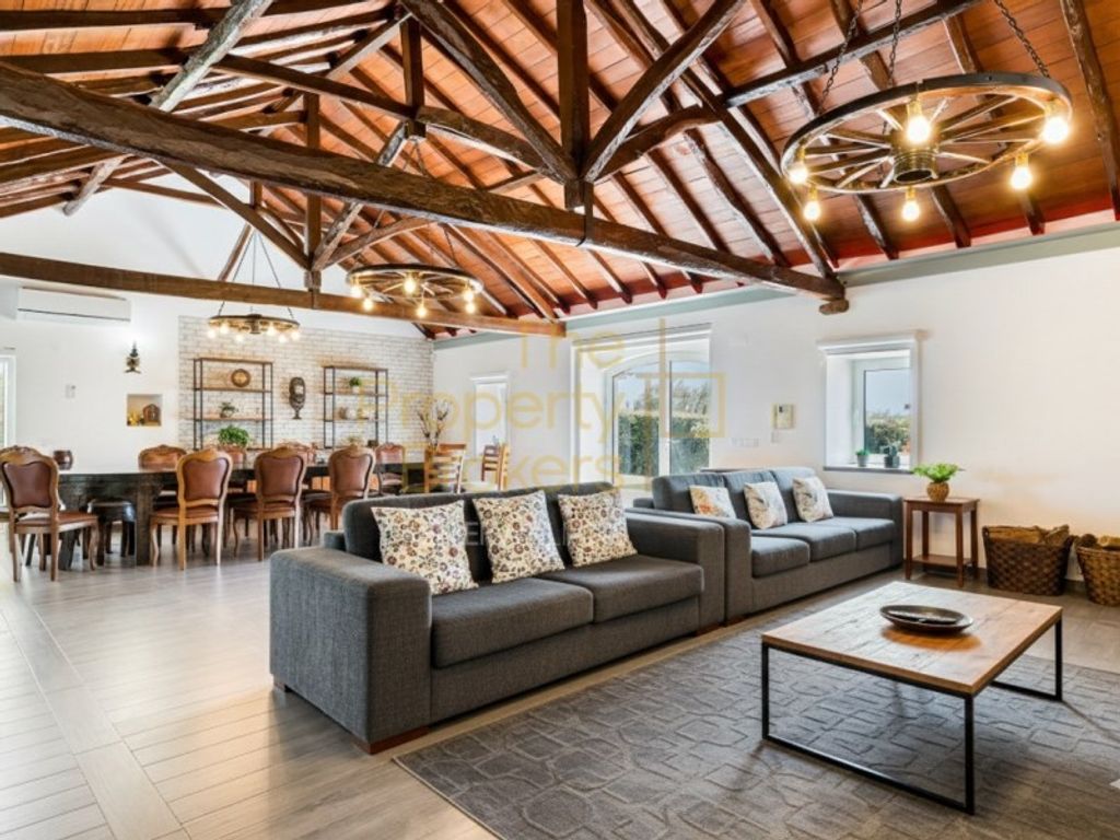 This single-story 4-bedroom villa, boasting 305 m² of living space on a 1500 m² plot, offers a prime location near the beach. It's just 15 minutes from Ericeira and nestled within a picturesque village. Facing south, the property benefits from excellent sun exposure.