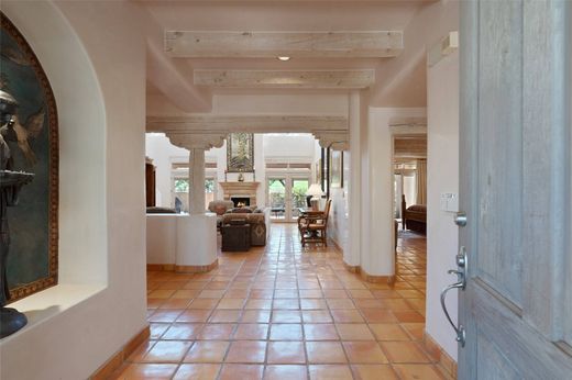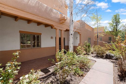 Welcome to abundant light and superb accommodation. This four bedroom 4 1/2 bathroom condo is ideally designed to meet all your living and entertaining needs with the lower level showcasing elegant tall ceilings, a spacious eat in kitchen that has been tastefully updated, a grand primary bedroom with ample bathroom, an en suite guest bedroom and alluring dining and living areas. The second level continues to impress with a large den featuring two separate terraces highlighting our famous western skies and two large bedrooms and bathrooms sure to assist with all your lifestyle desires. Quality updates and finishes throughout and located on the fourth fairway with a peaceful back portal to take in serene morning sunrises and satisfying golf course and nature views. This grand detached condo is situated at the end of a cul de sac providing plenty of quiet while in the midst of Santa Fe's premier condominium community. Home ownership comes with all of Quail Run's amenities including multiple fitness classes, engaging 9 hole golf course complete with golf pro shop, beautiful indoor pool with hot tub and full locker rooms, plenty of pickleball and tennis, state of the art workout areas, all with 24 hour hosted security and delightful grounds. Come and see!