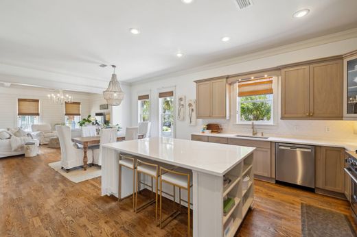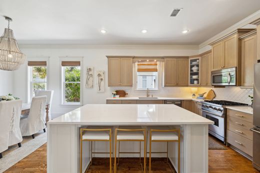 Situated south of Scenic 30A in the sought-after Village of White Cliffs, this elegantly updated four-bedroom, three-bath home presents a rare opportunity for full-time coastal living or an idyllic second residence. Set within a gated, non-rental community, the home enjoys private deeded beach access and a suite of community amenities including a resort-style pool, clubhouse, tennis courts, and a boardwalk leading directly to the sugar-white sands of Blue Mountain Beach. Recently refreshed to reflect modern tastes, the home showcases a newly renovated gourmet kitchen featuring an oversized island, Carrara Gold quartz countertops, a Viking gas range and refrigerator, and Bosch dishwasher. Rich hardwood flooring, designer lighting, and carefully curated finishes extend throughout, while fresh interior paint and updated bathrooms, including a luxurious new second-floor primary suite bath, add a touch of contemporary refinement. Designed for both gathering and everyday comfort, the open-concept living, dining, and kitchen areas are flooded with natural light, enhanced by white wood-accented walls and coffered tray ceilings. Thoughtful details such as a dedicated office, a large bonus loft, and a mudroom/laundry equipped with new GE Profile appliances provide exceptional functionality for year-round living. Outdoor spaces are equally inviting, with two breezy front balconies, a screened porch just off the kitchen, and a private fenced courtyard ideal for entertaining. An extended driveway and detached one-car garage ensure plentiful parking and storage. Perfect for young families relocating to the coast or empty nesters seeking a serene retreat with room to host, this beautifully maintained residence offers the coveted combination of privacy, luxury, and convenience—all within moments of the beaches, restaurants, and shops of 30A. A true gem along Florida’s Emerald Coast, this home captures the spirit of relaxed sophistication in a community designed for those who value coastal living without compromise.
