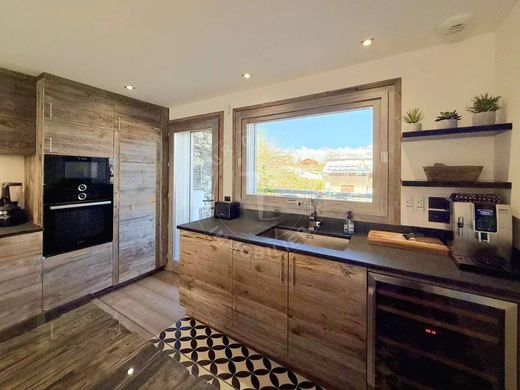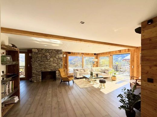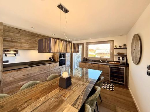 This exceptional 364 m² chalet with a panoramic view of the Aravis Mountain range, the Fiz Mountain range, and the Mont-Blanc range.