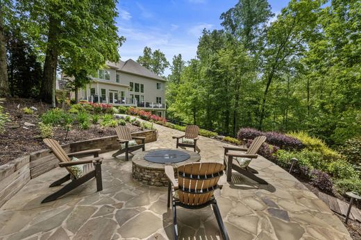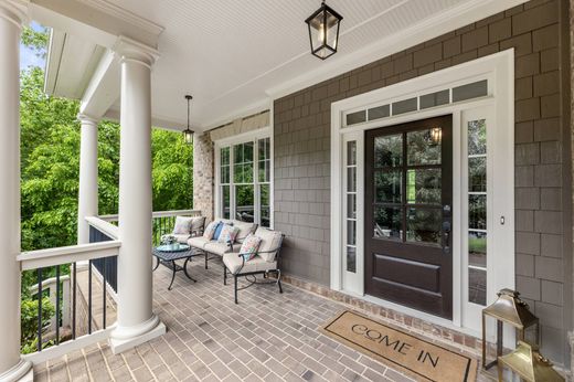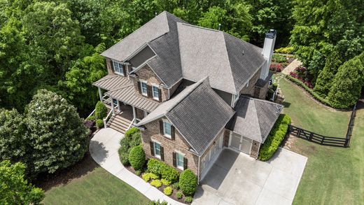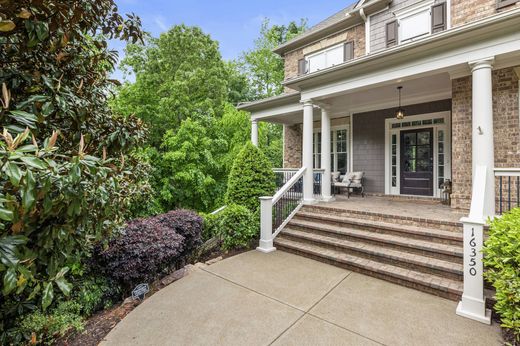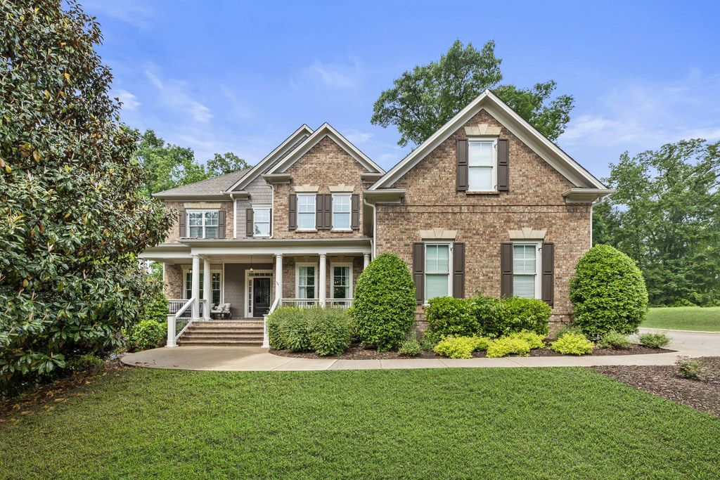 Welcome to this impressive model home in Milton’s desirable Hampshires swim and tennis community. Perfectly positioned at the rear of the neighborhood, this three-sides brick home offers exceptional privacy on 1.85+/- wooded acres, with natural surroundings that create a peaceful, private setting and picturesque views. A charming covered front porch leads into a gracious foyer flanked by a formal dining room with beautiful woodwork and a study, both featuring hardwood floors that continue throughout the main level. The two-story great room is the heart of the home with a striking fireplace framed by built-ins, a view to the upper level and soaring floor-to-ceiling windows that overlook the private backyard. The spacious layout flows seamlessly into a casual dining area, a fireside keeping room and a chef’s kitchen. The kitchen is equipped with a hidden walk-in pantry, an oversized island, abundant white cabinetry and stainless steel appliances. French doors from the keeping room lead to a rear deck, ideal for grilling or dining al fresco. A bedroom and full bathroom are located on the main level along with a mudroom and access to the three-car garage. Upstairs, the luxurious primary suite features a deep tray ceiling, a sitting room with morning bar and an elegant en suite bathroom with a vaulted ceiling, dual vanities, a makeup vanity, a large shower and a separate soaking bathtub. The suite is complete with a sprawling walk-in closet featuring a large central island. Three additional bedrooms, two full bathrooms and a conveniently located laundry room complete the upper level. The daylight basement offers endless possibilities for future expansion and opens to the private, fenced backyard. Enjoy living in the highly sought-after Birmingham Falls Elementary, Northwestern Middle and Cambridge High School districts. The neighborhood amenities include a large pool, two tennis courts and a resident-only park. Located just 15 minutes from downtown Crabapple, Alpharetta, and Avalon, this home is also only minutes from Scottsdale Farms Garden Center, Bell Memorial Park, the popular 7 Acre Bar and Grill, and a nearby Publix shopping center. Welcome home!