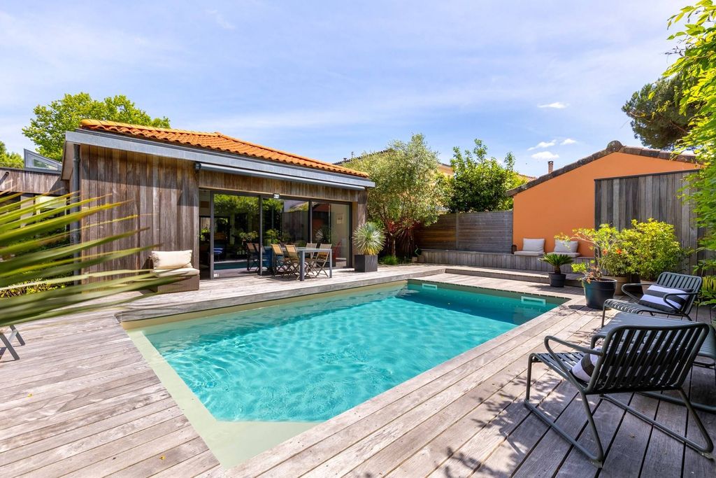 BORDEAUX CAUDERAN - SUMPTUOUS ARCHITECT HOUSE - GARDEN - SWIMMING POOL - GARAGE - 4 BEDROOMS Just minutes from Parc Bordelais, on one of Bordeaux’s most desirable streets, Bordeaux Sotheby’s International Realty proudly presents this stunning 200m² architect-designed home—an exclusive gem with timeless elegance and flawless condition! From the moment you arrive, the Corten steel façade and serene Japanese-inspired garden set the tone, leading you to a private oasis with a stylish pool area that blends shade and sun beautifully. Designed by an architect using only the finest materials, the home is a masterclass in refined design, space, and natural light. The ground floor offers a grand entrance, guest toilet, and a vast open-concept living area—lounge, dining space, and sleek, fully-equipped kitchen—all bathed in light thanks to expansive bay windows opening onto lush terraces. A luxurious master suite with dressing room and ensuite, plus a second bedroom with its own shower room, complete the main level. Upstairs: a smart office space with terrace access, two additional bedrooms, and a spacious bathroom. Extras include an automatic garage, air conditioning, pergola, and total privacy—no overlooking neighbors. Shops are a short walk away, and Bordeaux city center is under 15 minutes. Top schools nearby make this the ultimate family home. - What we love: the clean, modern lines, wall-to-wall glass framing the garden and pool, and the unbeatable location—ideal for family life and entertaining. Rare on the market. A must-see! Contact: Mr. Etienne Delpech +33 785 094 770 for Bordeaux Sotheby's International Realty. Prestige real estate, experts in luxury properties and exceptional estates, in Bordeaux and surrounding areas. etienne.delpech@bordeauxsothebysrealty.com