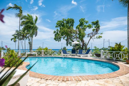 Impeccably appointed, this luxurious estate home in Montego Bay with old world charm embraces modern living and island warmth with its easy flow of indoor and outdoor living. The large deck and beautiful swimming pool with 180 degree stunning ocean and bay views offer a balance of generous outdoor areas for friends and families to converge and create lasting memories. The main house has four bedrooms and four bathrooms and a spacious guest cottage with a large en-suite bathroom. The charming dining area encourages family time combined with the beautiful kitchen with oversized island. Additionally there is a laundry room and staff quarters, a carport for four cars and large storage cupboards plus a large cellar, perfect for storing vintage bottles of wine. The property is approximately 5 acres and boasts lush gardens and immaculate landscape encouraging strolling at sunrise and sunset. Ideally located being approximately 10 to 20 minutes drive westward to shopping plazas, nightlife, white sand beaches and the International Airport. For the golf lovers, The Tryall Golf Club is approximately 10-15 minutes away. Please contact agent for viewing.