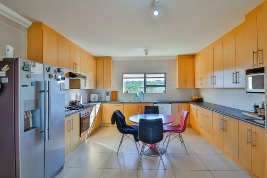 This well-maintained face brick home, perfectly positioned in a peaceful cul-de-sac and backing onto a greenbelt, offers breathtaking sea views, dual-living flexibility, and excellent income potential. The upper level features a spacious main bedroom with full en suite and sliding doors opening onto a sea-facing balcony, a second bedroom (currently used as a study) with wall bed and direct access to a second bathroom, and an open-plan living area that flows to two patios – one with ocean views, and the other sheltered on the northern side with a braai and tranquil countryside outlook. The kitchen is neat, functional, and well-equipped with a gas hob, electric oven, and ample cupboard space. Downstairs, the home offers two private flats with separate entrances: a generous one-bedroom flat with its own living area, kitchen, bathroom, and north-facing patio, as well as a sunny bachelor flat with an open-plan design. A separate laundry room is also located on the ground level. Additional features include a double garage with direct access into the home, ample parking, an inverter, water tank, fibre internet, alarm system, fully enclosed garden, and pet-friendly outdoor spaces. Warm, light-filled, and versatile, this home is ideal for comfortable family living with the added bonus of strong rental potential.