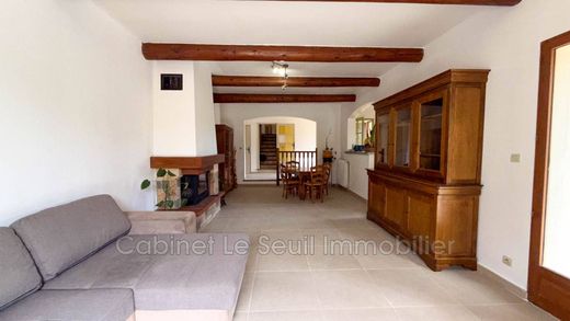 R+1 residential house, which comprises on the ground floor an entrance hall, a fitted kitchen, a large living room with insert, a bedroom with closet, a bathroom and separate toilet. On the first floor, a hallway with closet, a separate toilet, a shower room, two bedrooms with closets. On the garden level, a garage, a laundry room. Outside, a semi-covered terrace provides access to the living room and kitchen.