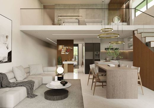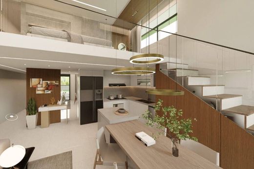 Apartment 3: Located on the ground floor with a private garden and covered porch, this apartment offers a commercial surface area of 134 sqm and is arranged over two levels. The ground floor features an entrance that opens into a bright, open-plan living space with floor-to-ceiling windows, a fully equipped kitchen with dining and lounge area, and access to the covered outdoor area and garden. The level is completed by two master bedrooms, each with en-suite bathroom and walk-through wardrobe.