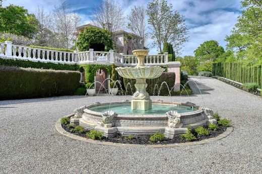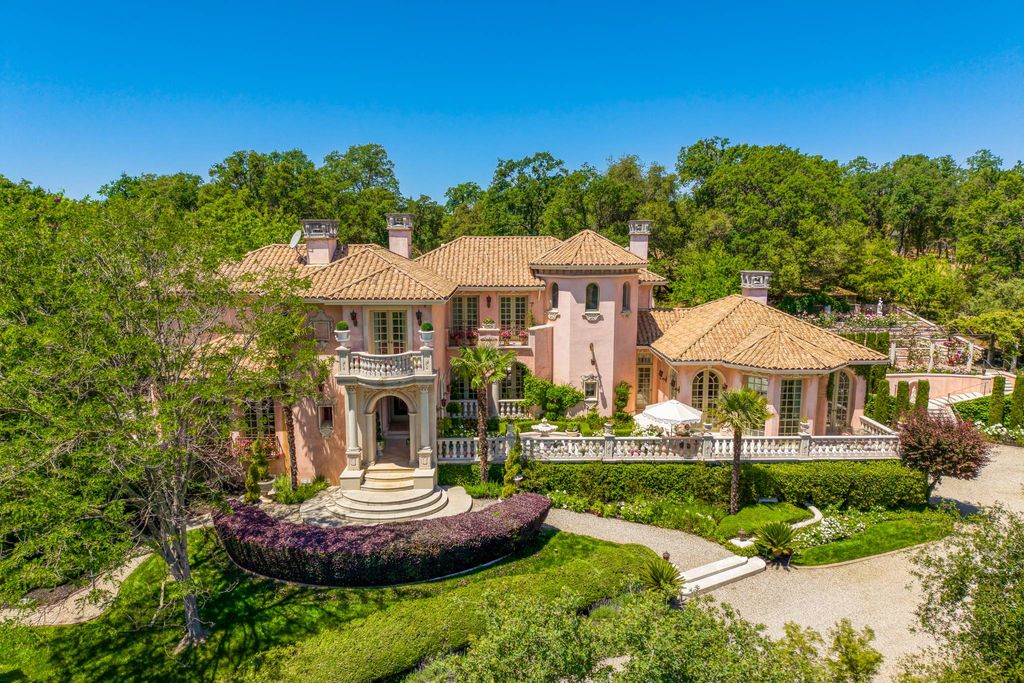 Step into a timeless masterpiece where the romance of classic Italian villas is seamlessly woven into the serene beauty of California's landscape. This exquisite 6,645 sq ft residence is more than a home, it's a rare opportunity to own a private slice of Tuscany right here at home. With 3 generously sized bedrooms and 4.5 elegantly appointed baths, every detail of this estate has been crafted to evoke a sense of refined luxury. From the moment you enter, you're immersed in rich artistry - hand-painted ceilings and walls using authentic Venetian pigments lend depth, texture, and a historic soul to every room. Step outside and the enchantment continues. Marble fountains and statuary, masterfully carved in Rome, are nestled within beautifully manicured grounds. Wander through the rose garden, inhale the intoxicating scent of blooming jasmine, or pause in the butterfly garden, where two flourishing fig trees and a stately pomegranate tree create a serene escape. The estate's expansive 25 acres are adorned with lemon, orange, lime, and kumquat trees. At the rear of the property, a peaceful vineyard invites you to savor a glass of wine or lose yourself in a favorite novel beneath the canopy of a majestic oak tree. This estate is a seamless blend of artistry, nature, and luxury!