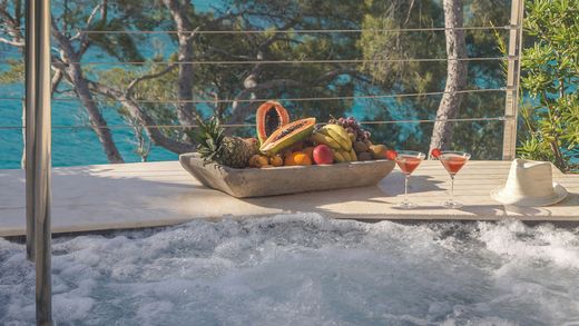 Luxury beachfront property with sea access and holiday rental license in Camp de Mar. This exquisite villa is located in the picturesque region of Andratx, in the charming village of Camp de Mar, on the enchanting island of Mallorca, Spain. Nestled in a quiet and prestigious neighborhood, this exclusive location offers both privacy and exhilarating proximity to the Mediterranean coast. The surrounding area is characterized by its natural beauty, with lush pine forests and spectacular views that highlight the island's stunning landscape. Camp de Mar is renowned for its enchanting beaches and crystal-clear waters, ideal for water sports and relaxing days by the sea. Foodies and fine dining enthusiasts will be delighted by the world-class restaurants just a stone's throw away. For golf lovers, the nearby golf course offers a superb opportunity to enjoy their swing against a breathtaking backdrop. This privileged location is well-connected to the island's transport network, providing easy access to the cosmopolitan capital, Palma, and the international airport. Combining the luxurious charm of Andratx with the idyllic tranquility of Camp de Mar, this villa is the perfect retreat for those seeking the best of both worlds – an elegant home in one of the most sought-after areas of the Mediterranean. This luxurious villa sits on a 1,426 m² plot directly on the seafront in Camp de Mar, offering direct access to the sea. The property boasts a modern, bright, and open style. Large panoramic windows flood the interior with natural light and showcase the unobstructed sea views. The villa offers approximately 520 m² of living space spread over four floors. The ground floor features a spacious open-plan living area with a modern fireplace, a dining area, a contemporary designer kitchen equipped with high-end Gaggenau appliances and a cooking island, a pantry, and a guest WC. The first floor houses the very generous master suite, which includes two en-suite bathrooms, a freestanding bathtub, a private sitting area, and a terrace with stunning sea views. On the second floor, there are three further bedrooms, each with its own bathroom, as well as two terraces with sea views. The basement houses a beautiful spa area with an indoor pool, sauna, relaxation area, and a bathroom. All floors are conveniently connected by both stairs and an elevator. The property also boasts two spacious terraces with sea views, a magnificent pool, and an adjoining sunbathing area. Another highlight of this luxury property is its private access to the sea. Additional features include: a garage for up to three vehicles, an elevator, a swimming pool, a jacuzzi, an indoor pool, a sauna, sea access, underfloor heating and air conditioning, a fireplace, and a holiday rental license. Please understand that we can only process inquiries with complete contact information. Note: All information contained in this offer is based solely on the information and statements provided by the seller. We assume no liability for the accuracy and completeness of this information. The condition of the property is exclusively defined by the notarized purchase agreement and its appendices, the official permits, and all public law authorizations. This exposé is not part of the purchase agreement. This offer is subject to change without notice. Errors, omissions, and prior sale of the property are reserved. If the exposé does not contain information regarding the energy performance certificate, it will be prepared and available no later than the viewing appointment. Of course, we are always happy to answer any further questions or arrange a viewing appointment with our Mallorca team – even on weekends.