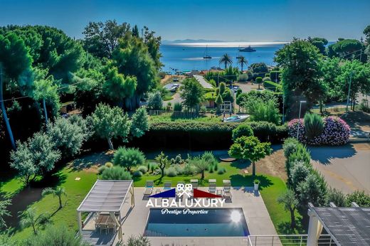 Elegant villa directly on the beach, approximately 340 square meters, with an additional 40 square meters unfinished, easily accessible from inside the structure. Set in a lush garden of approximately 4,000 square meters, enriched with a swimming pool, specially designed barbecue area, post-beach space, bocce court, and technical area. The property boasts approximately 5,000 plants and shrubs, including aromatic specimens, with direct access to an 80-meter pedestrian path leading to the beach. The villa features 4 double bedrooms and 4 large bathrooms. Heating and cooling are managed through a low-energy consumption Mitsubishi Electric system. Additional features include thermal solar panels for hot water production, two complete kitchens (one per floor) with induction cooktops, large thermally cut, shatterproof windows, indoor parking for 4 cars, internal technical room, illuminated garden, illuminated pool, electric gate, two pedestrian entrances (road and beach), high-speed wifi connection via fixed radio bridge, internal staircase connecting the two floors, air-conditioned mezzanine floor on the first floor, internal and external LED lighting. The structure is fully insulated with thermal insulation and offers direct access to both the first floor and the ground floor. Additionally, the property is equipped with a private freshwater well. A prestigious residence that combines luxury and functionality, offering a unique and refined living experience.