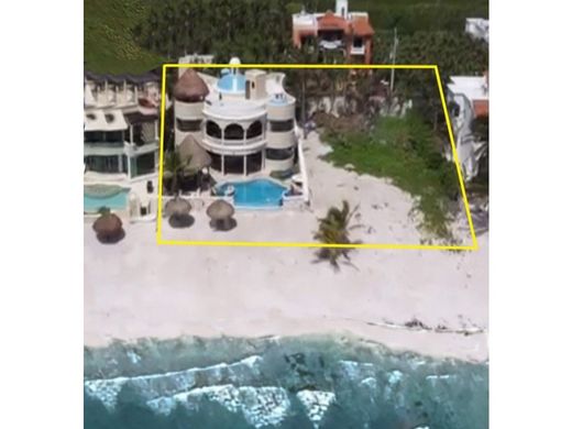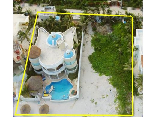 A unique investment opportunity in Tulum, in one of the most exclusive areas. This is a luxury beachfront villa and a 1,000-square-meter fenced, vacant lot, ready for a residential, condominium, or hotel project. The lot features 20 linear meters of beachfront by 50 meters of depth, the same size as the lot on which the luxury villa is built. Together, both properties offer 40 linear meters of beachfront by 50 meters of depth, a total of 2,000 square meters of beachfront in Tulum. The spectacular villa and the adjacent lot are located in an exclusive beachfront neighborhood in Tulum called Tankah, one of the most exclusive in the entire Riviera Maya, a residential area experiencing a real estate boom. This Villa has 4 fantastic bedrooms with their own bathroom in the main building, plus a fully equipped suite with kitchenette and own bathroom in the secondary building, Two master bedrooms with spectacular panoramic views of the sea, since its curved architecture provides generous spaces in both bedrooms, both on the second level, with access to a large terrace to enjoy the constant and fresh breeze, in addition to the turquoise and emerald tones that Tankah offers, one more room on the second level, and a guest room on the first level. The spectacular architecture of this villa features a beautiful double-height porch with a double staircase surrounding its central marble fountain in the foyer. Further into the property are the living room, dining room, and chef's kitchen, all with ocean views. The infinity pool features a Jacuzzi, underwater lounge chairs, and a fountain—unique in the area—has an adjoining palapa and BBQ area, ideal for oceanfront breakfasts. And, due to its privacy, it also offers a massage, yoga, and meditation area, among other amenities. The villa also boasts a 20-meter private beach, featuring a pair of small palapas with lounge chairs, providing even more options for enjoying the experience of an oceanfront property. Another important feature of this property is that it belongs to the select group of properties with a high rate of vacation recurrence, important badges, reviews, and ratings on various rental platforms such as Airbnb and Homeaway, maintaining near-perfect ratings and very excellent returns in the vacation rental business. It features three terraces: one on the ground floor and one on the rooftop, which also features a small minibar, a palapa-covered living room offering an even more spectacular panoramic view of Tankah's ocean in Tulum, as well as a staff cottage and covered parking for two vehicles. This stunning villa has 600 square meters of construction, built on 1,000 square meters of land. For more information and to schedule an appointment, please contact us.